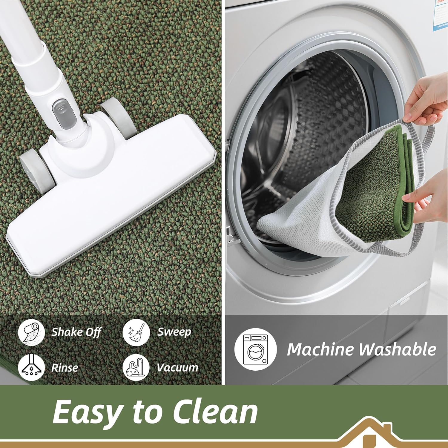BEQHAUSE Kitchen Rugs and Mats 2PCS, Non-Slip Kitchen Mats for Floor, Absorbent and Stain Resistant Kitchen Runner, Machine Washable Rugs for Kitchen, Laundry & Sink, 24"x36"+24"x60", Green