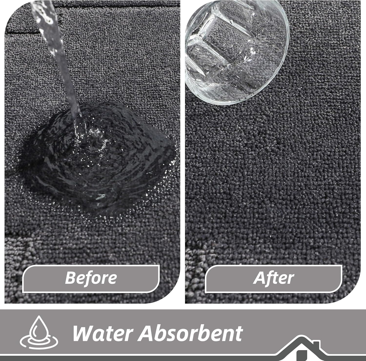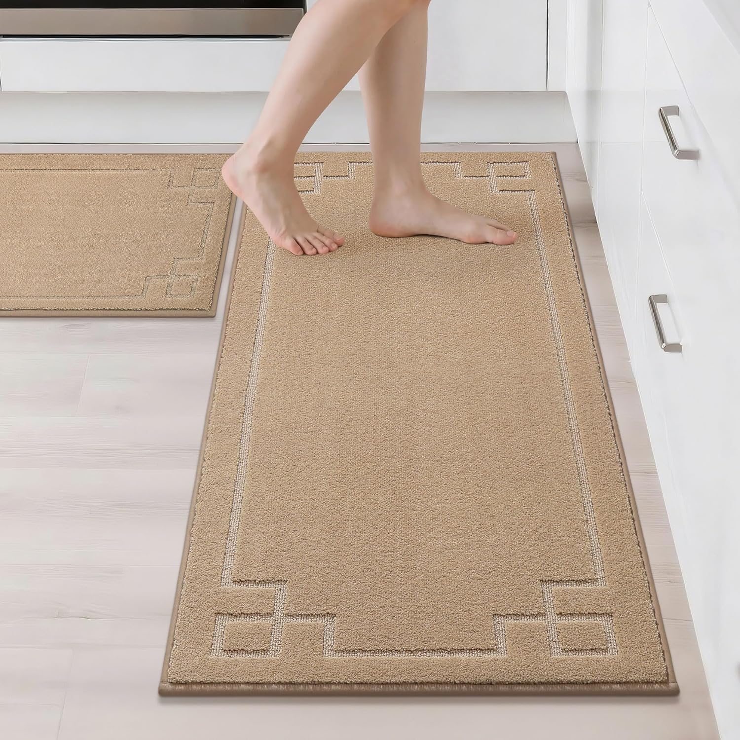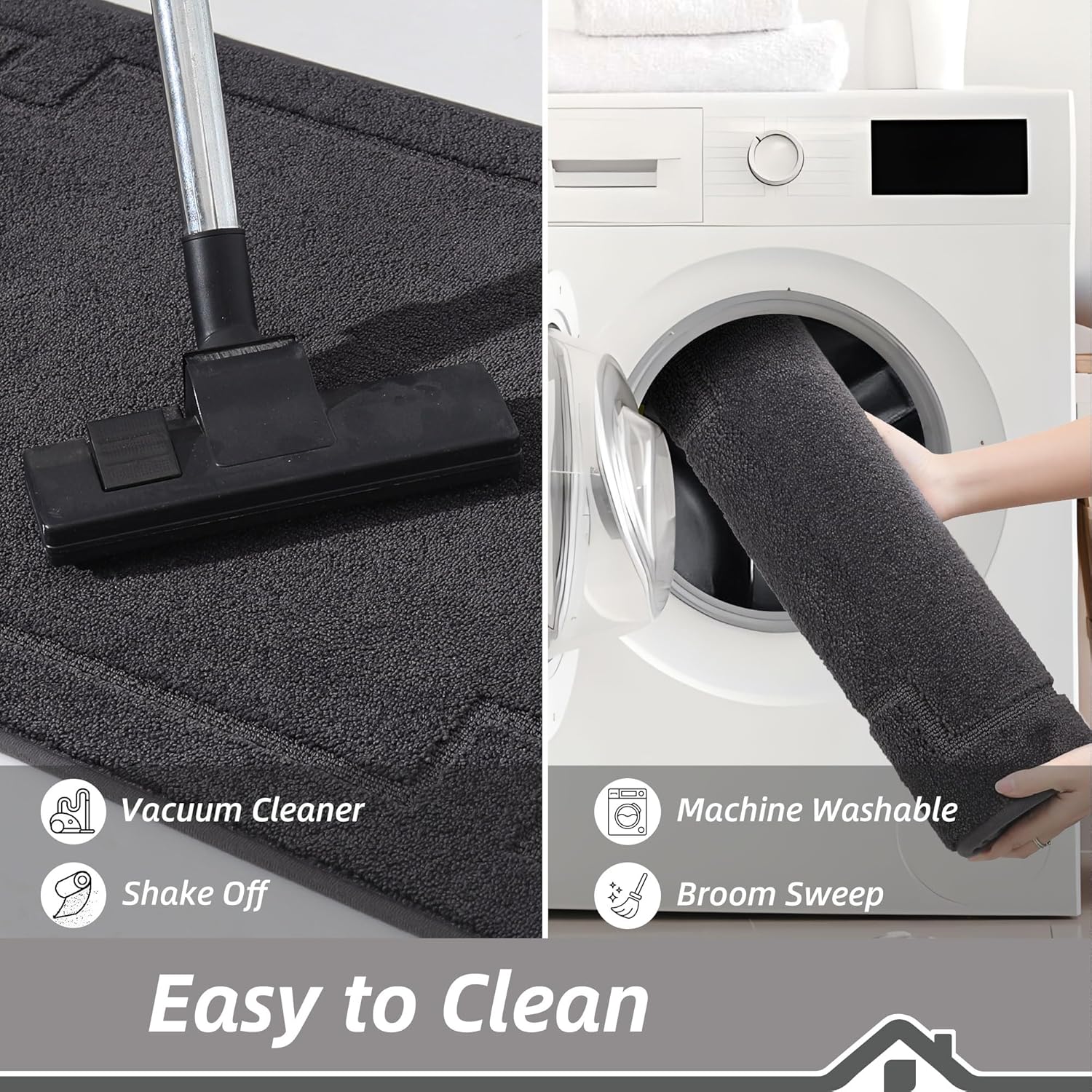 BEQHAUSE Kitchen Rugs Non-Slip Washable Rug Sets of 2, Machine Washable Kitchen Mats Absorbent Soft Kitchen Runner Rugs for Floor,Sink,Hallway,Laundry,24”x36”+24”x60”, Dark Grey